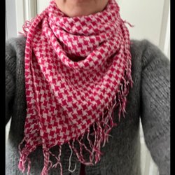Den är fluffig och varm, men har ett hål och lite tråddragning (se bilder).