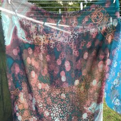 Strikket/hæklet sjæl i hvidt.