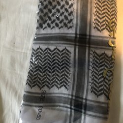Vit, texturerad sjal med fransar. Den har inslag av glittrande trådar.