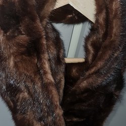 En fin och väldigt varm loopscarf i coyote päls.bred nog för att dra upp och värma ansiktet. Ny med lappar