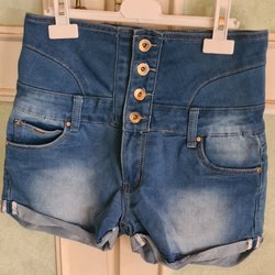 Jeansshorts i en ljusare tvätt med upprullade benslut. Shortsen har fickor både fram och bak samt två dekorativa knappar i midjan.
