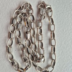 Jag säljer en silverkedja, 925 Äkta Silver, som väger 28 Gram.Der är 44,5 cm long och 4-5 mm bredd.
