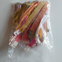 Dragkedjor i olika längder o färger, grå ca 73 cm, vinröd ca 47 cm, vå vinröda ca 17 cm, två grå 15 cm, svart 25 cm, vit 15 cm.