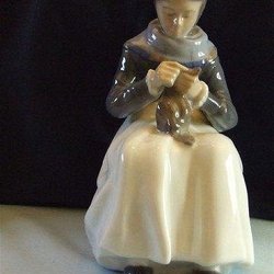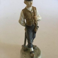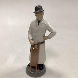 Elegant porslinsfigur från Royal Copenhagen, föreställande en snickare med verktyg i handen.
