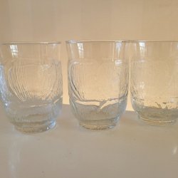 4 st dricksglas i hårdplast. Vita dekorerade med ceris blomma. Rymmer 4 dl upp till kant. Höjd ca 12 cm.