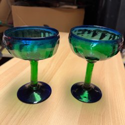 Glas med dekor. Dessa glas är i kristall och det är 8 st stora höjd 16 cm bredd 8,5 cm och 6 snaps glas kan finnas nagg