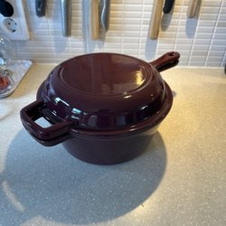 Mått: diameter 22,5 cm, höjd 6,5 cm, handtag 19 cm långt.