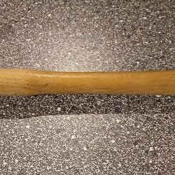 Köttklubba med trähandtag. Huvudet är i metall och har två sidor, en slät och en med piggar. Används för att möra kött.