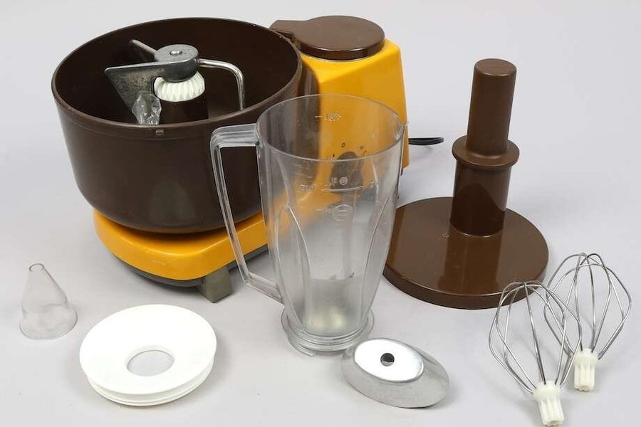 Bosch assistent med tillbehör. Inkluderar vispar, degkrok, mixer och diverse andra delar.