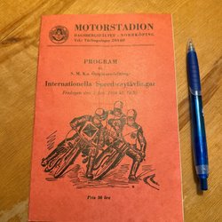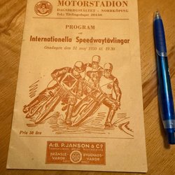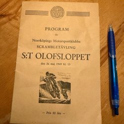 Ett original program för Kungliga Bråvalla flygflottiljs flygdag 16 juni 1946. Veck i nederkant och överkant och en liten reva mitt på framsida men hel för övrigt.