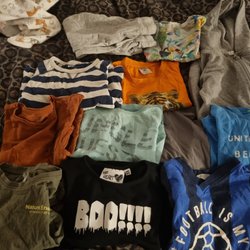 Ett blandat paket med barnkläder. Innehåller bland annat shorts, byxor, t-shirts, underkläder och strumpor.