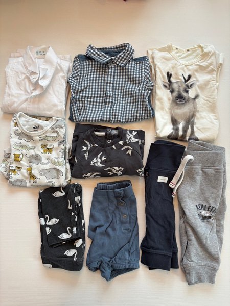 Ett fint set med barnkläder. Innehåller skjorta, flera bodies, tröja, mjukisbyxor och shorts.