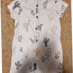 Två söta sparkdräkter med dragkedja framtill. Den ena är gul med rosa flamingos och den andra är turkos med ett djungelmotiv.