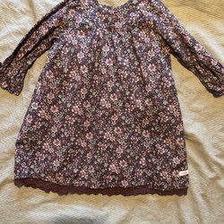 Söt, ärmlös klänning med blommigt mönster och volangdetaljer. Klänningen har en ljus bottenfärg med rosa och grå/gröna blommor.