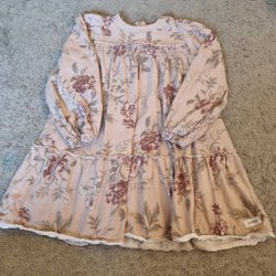 Söt klänning i stl 128 från Newbie Limited Edition med ett vackert jordgubbsmönster. Klänningen har volanger vid axlarna och en dekorativ rosett baktill. Använd en gång.
