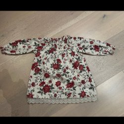 Söt klänning med lång ärm och ett blommigt mönster.