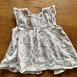 Vit klänning med blommor och volangdetaljer från Newbie. Klänningen har ett blommigt mönster i blått och lila.