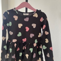 Klänning med puffärm och resår i midjan. Fyrkantig halsringning.