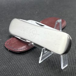 Fickkniv Classic 66 GSV med svart läderfodral från EKA Eskilstuna. Med SAAB logotyp i guld märkt på ena skaftet och stora riksvapnet på det andra. Mycket fint skick, ser oanvänd ut, se bilder för egen bedömning.