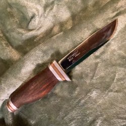 En klassisk Mora kniv med trähandtag. Perfekt för friluftsliv och vardagsbruk.