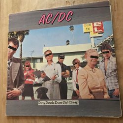 AC/DC - Dirty Deeds Done Dirt Cheap, utgiven 1976 på Albert Productions. Albumet innehåller låtar som ”Dirty Deeds Done Dirt Cheap”, ”Ain't No Fun (Waiting Round to Be a Millionaire)” och ”Jailbreak”.