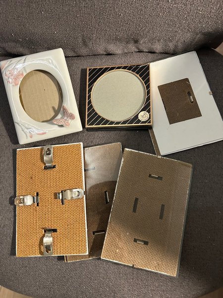 Diverse fotoramar för att rama in dina minnen. 15 x 10 cm ,10 x 10 cm och 13 x 9,5cm. En spricka finns på den mittersta ramen högst upp.