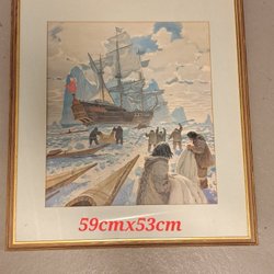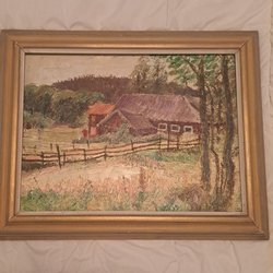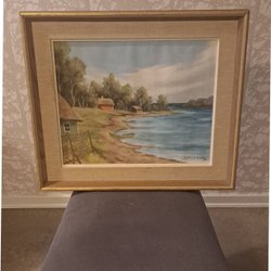 En vacker tavla med måtten 42cm x 32cm. Motivet föreställer en grupp människor runt ett bord i en trädgård.