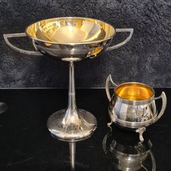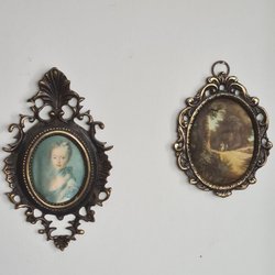 Storlek: 17- 13 höjd och 9 cm bredd. Den stora målningen har en liten defekt längst ner.
