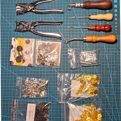 Set med läderhantverksstämplar för att skapa mönster på läder.