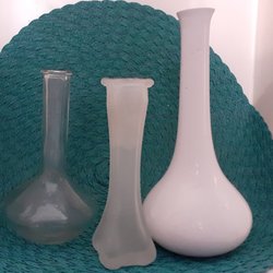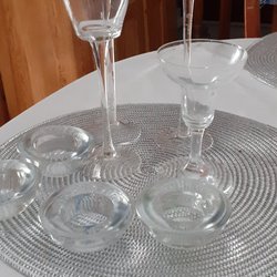 Porslinskruka diameter 13 cm . Kruka i glas diameter 16 cm. Grå kruka/fat diameter 18 cm, lämplig för bordsdekoration.