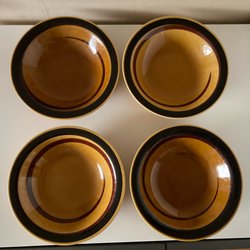 Två höga, smala ytterfoder med röd glasyr i fint skick. Varje kruka har ett mönster i ena kanten på två av sidorna. Perfekta till jul men fin färg året runt. Blänk förekommer i bilderna. Hela utan skador, zooma