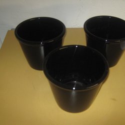 Tre blomkrukor i keramik. Mått från vänster till höger H x Diameter: 13,5 x 15, L 21 x B 13 x H 9, 11,5 x 15.