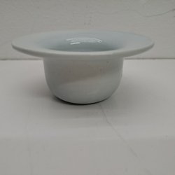Ytterfoder i keramik med en rosa kant. Fodret har en vågig form upptill och en räfflad yta. Höjden är ca17 cm och diametern är ca 20 cm.