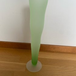 En felfri grön vas med dekorativ design. h: 32 cm b: 12 cm, äkta hantverk