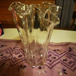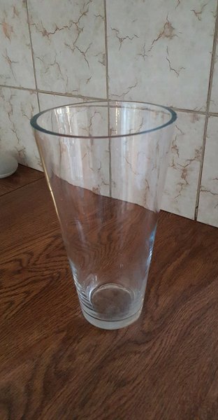 En fin glasvas. 26 cm hög . Väljer ett större paket på porto då jag inte vet vikten efter dom jag vill packa väl. Betalar tillbaka på frakten om den blir billigare.