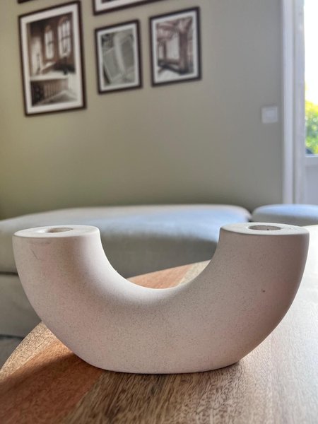 En stilren ljusstake som passar perfekt som dekoration i hemmet. Den har plats för två ljus.