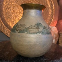 En dekorativ, fin äldre vas med blommotiv.