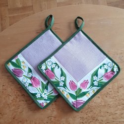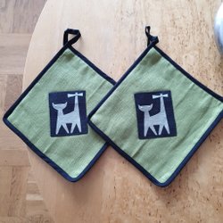 Annonsen avser ett par dvs. 2 Grytlappar som bilden visar. Grytlappens mått: ca 22 cm x ca 24 cm.