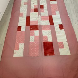 Mycket fint handgjort Lila mönstrat lapptäcke i storlek 2,20x2,20cm.