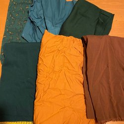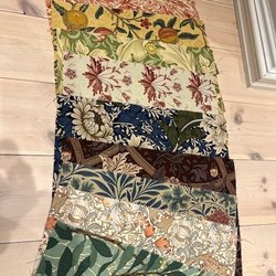 Randigt tyg bredd 140 cm och längd 119 cm. Bit av samma tyg bredd 46 cm och längd 120 cm.