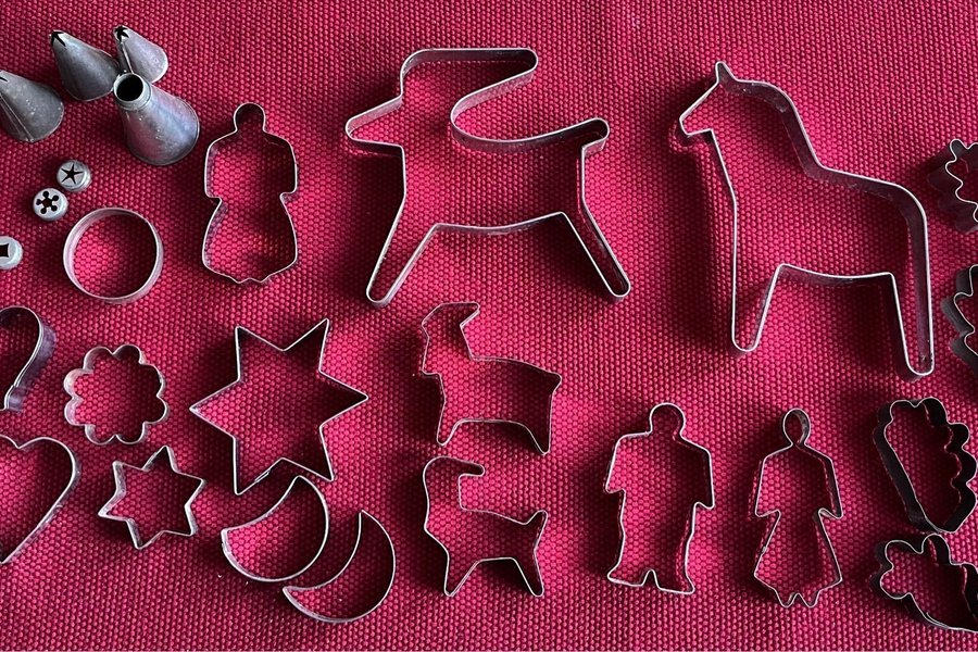 Samling av pepparkaksformar / kakformar gamla och nyare modeller.