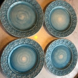 Tallrik i blå färg. Diam 19 cm 8 stycken