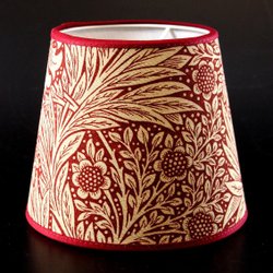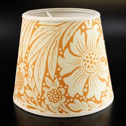 Lampskärm, tillverkad i anrik svensk fabrik. Mycket fin kvalitet. Tyget Marigold är ritat av William Morris, tillverkat hos Sanderson - högsta kvalitet på tillverkningen. Höjd 14 cm. Nedre diameter 17 cm. Klofäste. Se övriga auktioner. Vi samfraktar så förmånligt som möjligt.