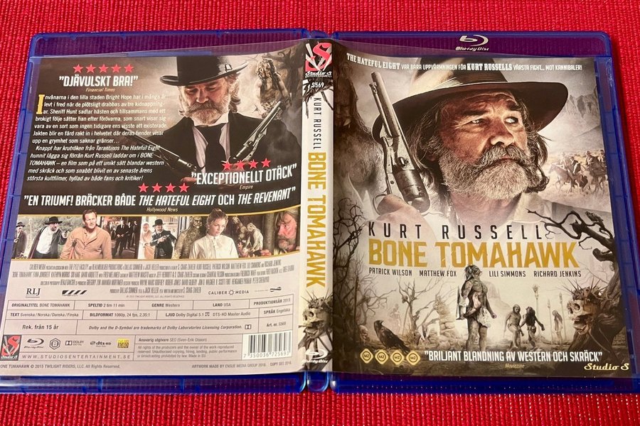 Blu-ray-utgåva av filmen Bone Tomahawk. Originaltitel: Bone Tomahawk. Speltid: 2 timmar 11 minuter. Bildformat: 1080p, 24 fps, 2.35:1. Ljud: Dolby Digital 5.1, DTS-HD Master Audio. Språk: Engelska. Textning: Svenska, Norska, Danska, Finska. Produktionsår: 2015.