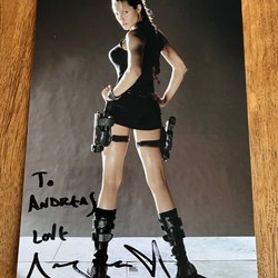 Signerat fotografi (23*15) av Michael Eisner, tidigare VD för Walt Disney Company, tillsammans med en Musse Pigg-figur. Bilden är signerad av Michael Eisner med svart penna.