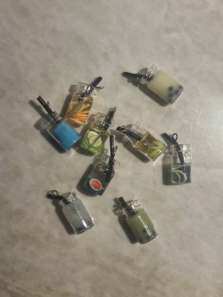 Söta berlocker i form av bubble tea. Perfekt för smyckestillverkning eller som dekoration.