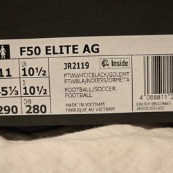 Ett par begagnade Adidas fotbollsskor. Skorna är svarta med guld detaljer och har snörning. Perfekt för fotbollsträningen eller matchen.
