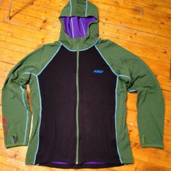 Grön väst med dragkedja framtill. Reflexdetaljer finns på både fram- och baksidan. Baksidan är gjord av ett nätmaterial.