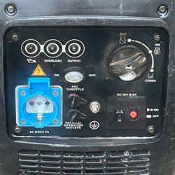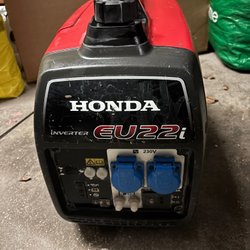 Elverk med ram. Blå färg på motorn. Tanken är placerad ovanpå motorn.