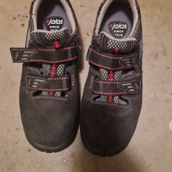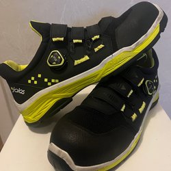 Säljer ett par svarta skyddsskor från Jalas. Skorna har en grön detalj på sidan och insidan. Perfekt för arbete som kräver skydd. Advändat bara en kort tid .